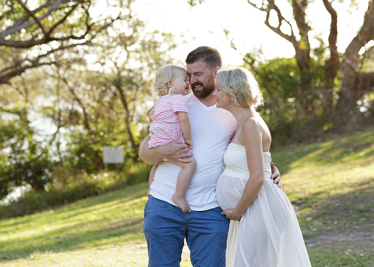 This beautiful session was taken at the beginning of the 2018. It was one of the hottest summer afternoons, even at 7.00pm. Waiting for the heat and harsh sun to soften, we started our Maternity Photography Shoot on the beautiful green lawn at Darook Park, Cronulla. The green lawn, trees and the summer’s light peering through the tress made for beautiful photos.