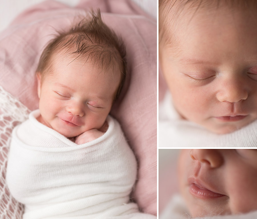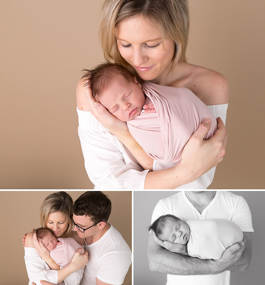 Newborn Photographers commonly photograph babies within their first 2-3 weeks of being born, while they still have their womb like newborn curl, are very sleepy and less prone to baby acne. This gorgeous girl, Scout was 9 days old for her session, and she totally rocked it, along with her gorgeous family. Scout gave us lots of cute smiles, slept like an angel and had the softest hair and sweetest little face. Welcome to the world baby Scout, 9 days.